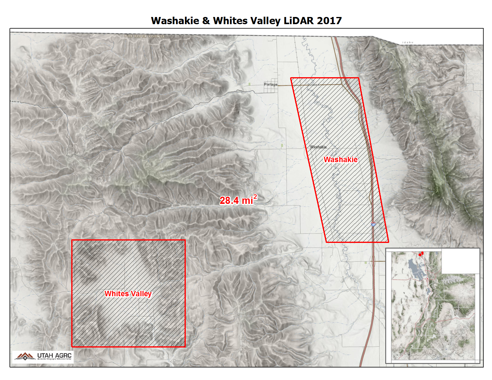 During the Spring of 2017 UGRC and the Utah Department of Natural Resources, Division of Water Resources acquired ~28 square miles of 8 points per meter Quality Level 1 Lidar of Washakie, Utah and Whites Valley in Northern Utah. The 0.5 meter resolution bare earth DEMs and first-return/highest-hit DSMs in .img format have a 10.0cm vertical RMSE accuracy and are available for download. The LAS point clouds are available from The National Map , opens in a new tab . This elevation data was collected April 15-16, 2017.